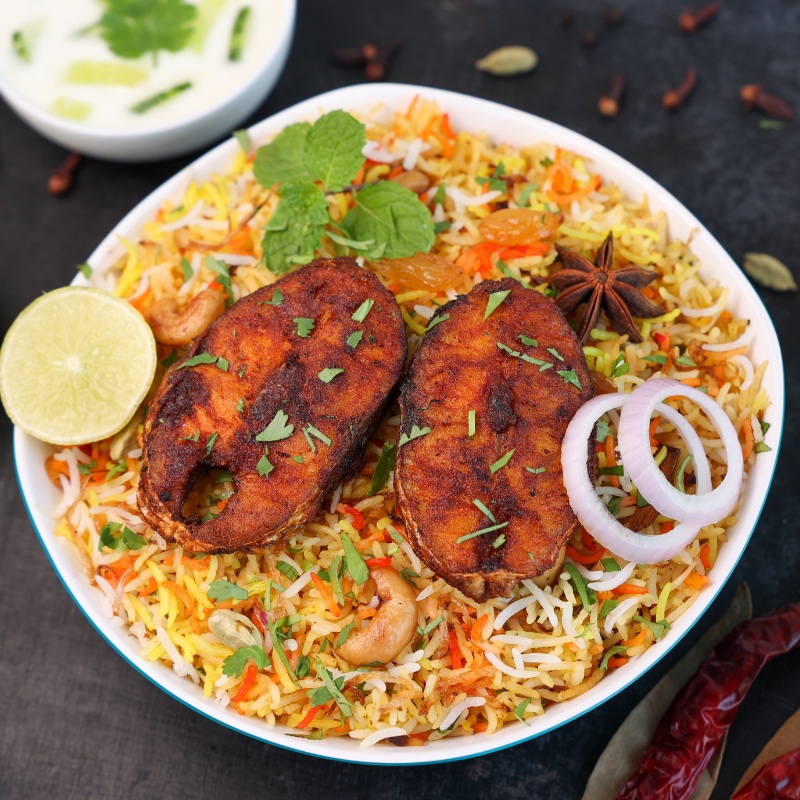 Marinate fish in spices, sear lightly, layer with cooked rice and herbs, then dum-cook for a perfectly infused biryani.